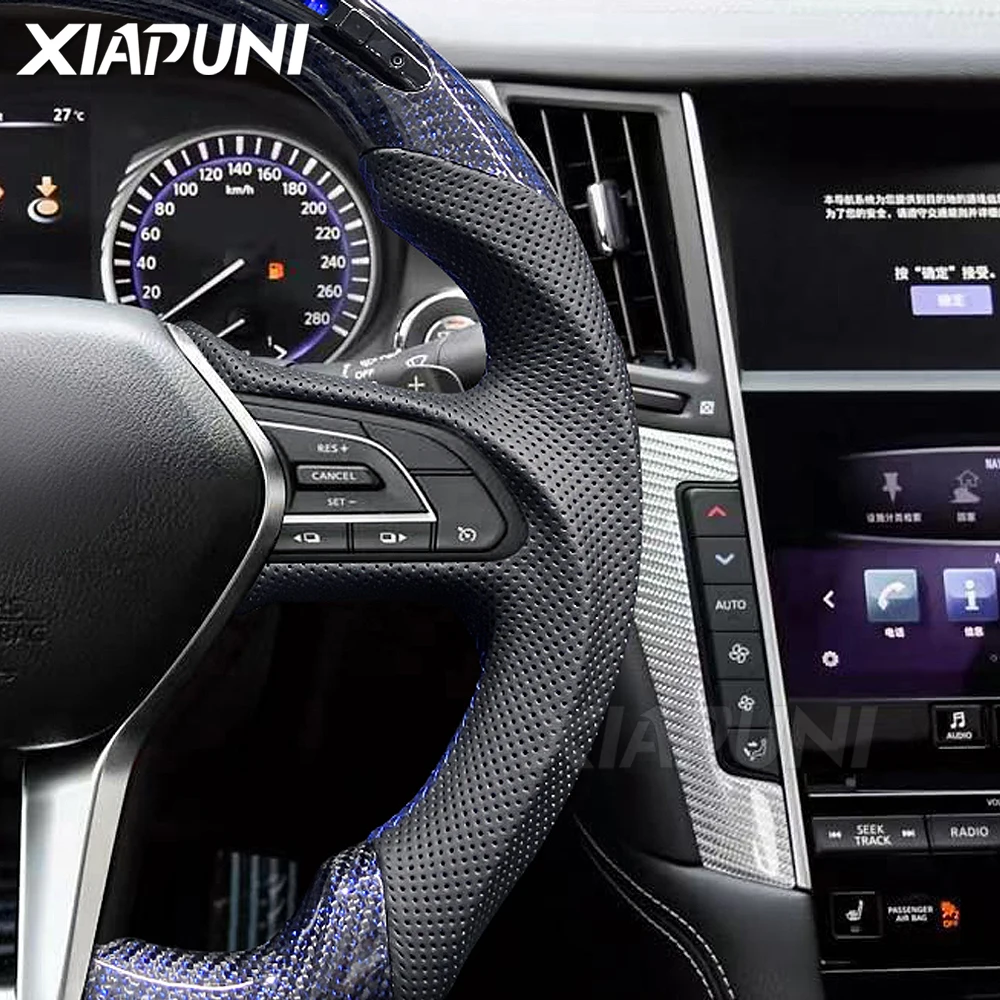 For Infiniti Q50 Q60 LED Steering Wheel 2015-2022 Carbon Fiber Perforated Leather Customized Sport Wheel